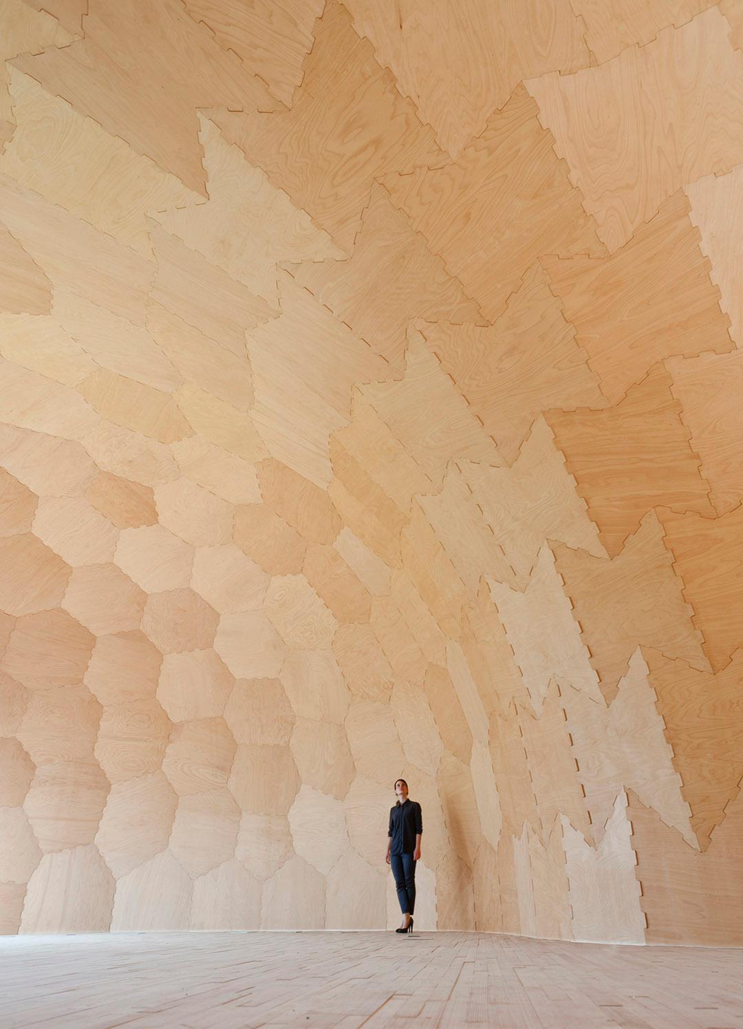 是第一座基本結構完全采用機器人預制的山毛櫸膠合板構成的建筑。