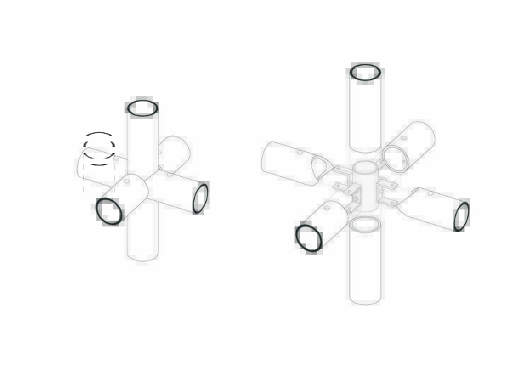 作為臨時空間,竹林組裝靈活,可因地制宜延展出不同的可能性。特別設計的竹結構及連接部件可滿足于短時內組裝、拆卸的需求。嵌入式鋼板、竹構件的燕尾榫,以及撓度和細長比的整體結構設計,打破了臨時空間的傳統設計理念。而竹子的溫和氣質與家具的自然沉靜相得益彰,闡釋了銳馳對于家與自然和諧共生的美好向往。竹在中國傳統文化中擁有深厚的歷史底蘊。展廳內簡練的空間語言與構造細節則為其增添現代注腳,引發觀者對于傳統與創新這組二元關系的探討。